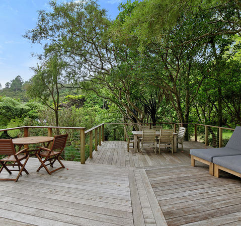 In the past two years the Tauranga-bound vendors have invested more than $210,000 on renovating what was going to be their forever home. They have rewired and replumbed, fitted new internal doors and LED lighting, installed a Rinnai heating and cooling system that economically runs off heat pump technology, wired for home theatre in the lounge and family area, remodelled the kitchen and built a 65sqm tiered Kwila deck with treetops views.